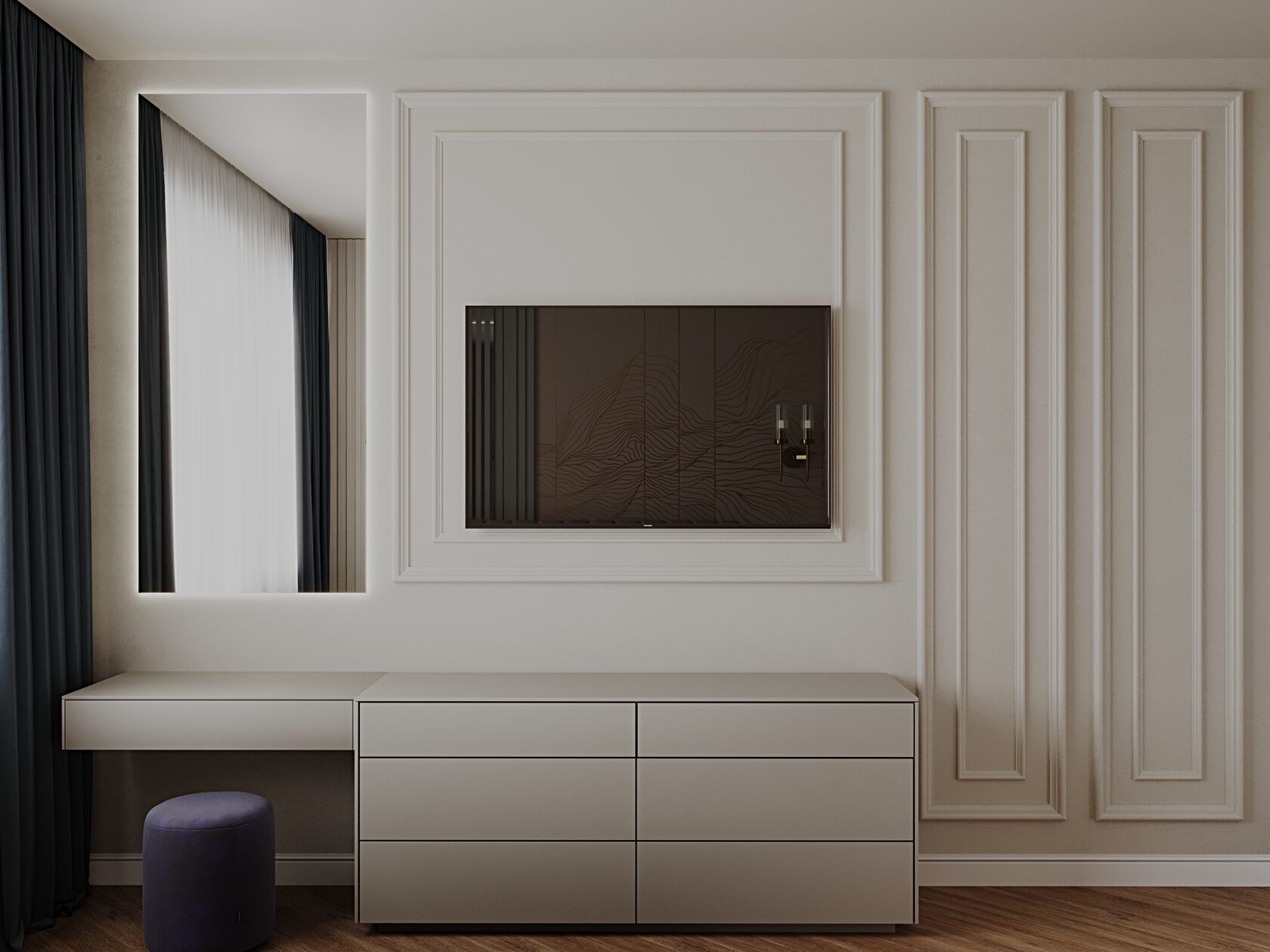 Когда мы встретились с заказчиком — молодой парой с двумя маленькими детьми — в их новой квартире площадью 88,5 м² в ЖК “Live Варшавская”, мы сразу почувствовали их стремление создать гармоничное пространство, которое будет одновременно красивым и функциональным. Заказчики мечтали о неоклассическом интерьере, который отражал бы их личность и подходил для жизни с детьми, и при этом у нас был ограниченный бюджет около 5,7 млн рублей (примерно 65 тыс. за квадратный метр).